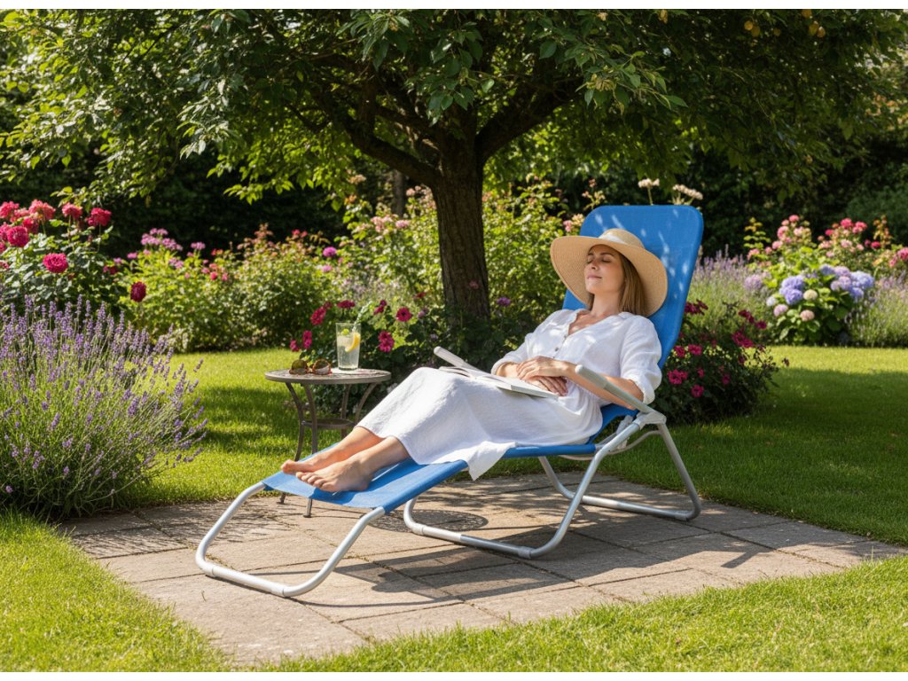 Štýlové a pohodlné – toto modré záhradné ležadlo prináša nádych sviežosti do vášho relaxačného priestoru. Ideálne do záhrady, na balkón alebo terasu – zabezpečuje pohodlný oddych.