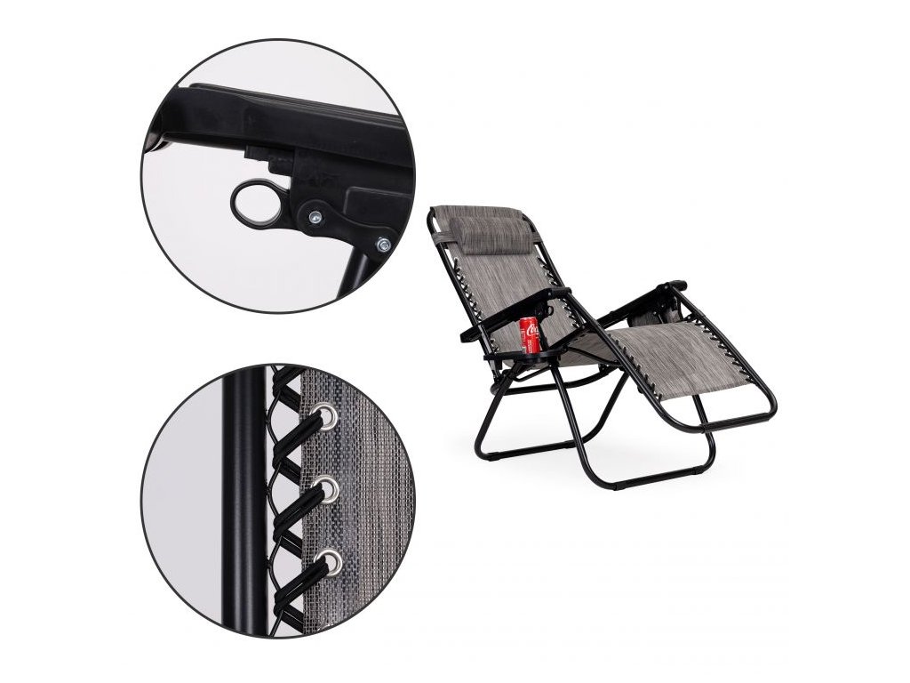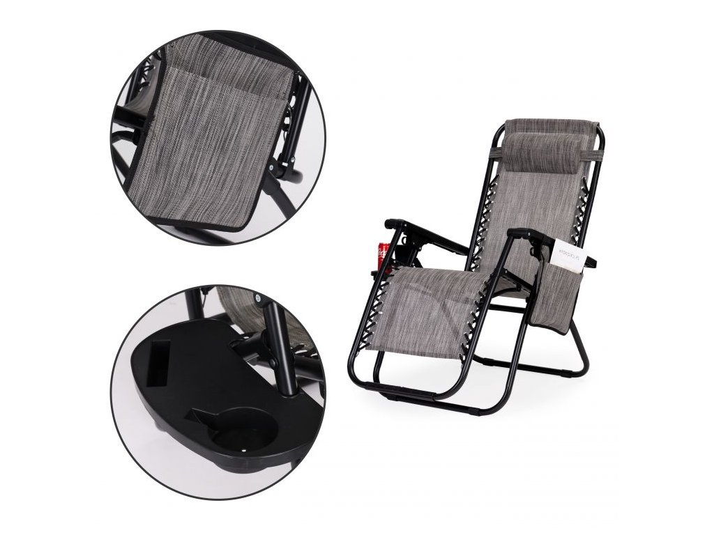 Špeciálna konštrukcia lehátka umožňuje nastaviť polohu v ľahu. Materiál lehátka je vodotesný a priepustný pre vodu. Záhradná stolička je naviac vybavená taškou pre doplnky a stojanom na nápoje. Pohodlná opierka hlavy zaisťuje pohodlný odpočinok a sklopná konštrukcia lehátka umožňuje prepravu na akékoľvek miesto.