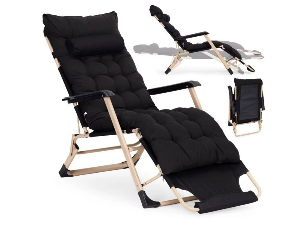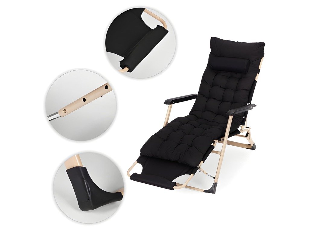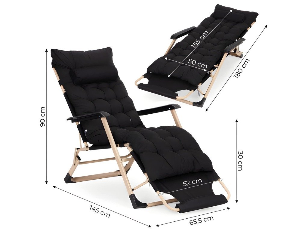 Dizajn 2 v 1 vám umožňuje používať produkt ako kreslo alebo klasické ležadlo, ktoré poskytuje pohodlnú polohu na relaxáciu vonku. Rám je vyrobený z odolnej ocele s práškovou farbou, čo zaručuje trvácnosť a ochranu proti korózii. Sedadlo a operadlo sú vyrobené z oxfordskej látky 600D , ktorá je vysoko odolná voči oderu a vhodná na vonkajšie použitie. Ležadlo má 3-polohové nastavenie opierky nôh , čo vám umožňuje prispôsobiť si polohu podľa vašich preferencií. Široká látková opierka nôh poskytuje pohodlnú oporu nôh, zatiaľ čo protišmykové nožičky zvyšujú stabilitu a chránia povrch pred poškriabaním. Súčasťou balenia je veľký prešívaný vankúš s opierkou hlavy , ktorý pokrýva sedadlo a operadlo. Je vyrobený z materiálu odolného voči poveternostným vplyvom a má upevňovacie popruhy a stabilizačnú výstuhu, ktorá zabraňuje posunutiu počas používania. Skladacia konštrukcia uľahčuje prepravu a skladovanie ležadla mimo sezóny. Maximálna nosnosť je 150 kg.