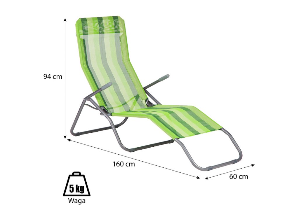 Stabilitu ležadla zaisťujú oceľové rúrky s priemerom 24 mm. Vďaka pevnej konštrukcii a materiálu textiline (polyesterové vlákno potiahnuté vinylom), ktorý je veľmi odolný, je nosnosť ležadla 100 kg.