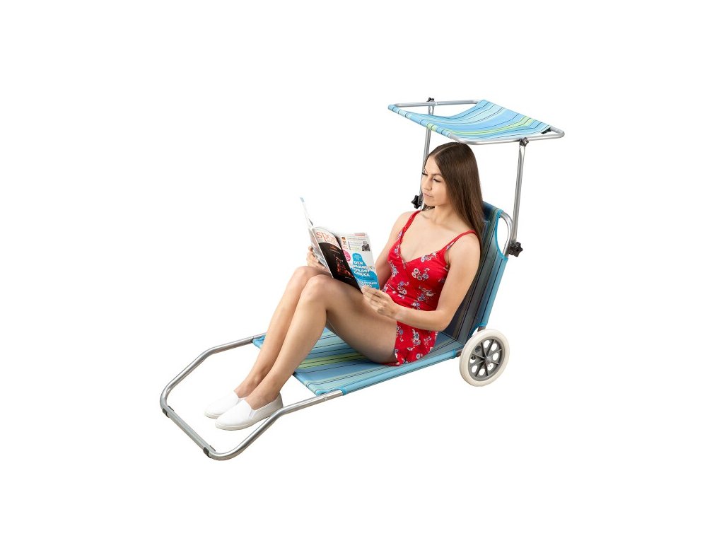 Je to ideálny spoločník na výlety na pláž, ale samozrejme sa hodí aj na záhradu alebo do kempu. Je to všestranné lehátko, ktoré sa dá používať v akýchkoľvek podmienkach a v akomkoľvek teréne. Jednou z mnohých výhod modelu NC3330 sú jeho kolesá. Kolieska vám pomôžu nielen ľahko umiestniť lehátko na vhodné miesto. Konštrukcia lehátka umožňuje vytvoriť z neho praktický vozík. Takto nemusíte nosiť svoje vybavenie v rukách, keď idete na pláž. Stačí si na lehátko položiť veci a vďaka kolieskam sa pohodlne a bez námahy dostanete na požadované miesto. Medzi mnohými výhodami modelu NC3330 treba spomenúť aj tienidlo. Ochráni vašu tvár pred slnkom a umožní vám čítať si knihu alebo sa kochať výhľadom na more. Kolesá aj tienidlo sú odnímateľné. Pohodlie zvyšuje vankúš, ktorý je súčasťou lehátka. Lehátko NC3330 možno polohovať do polohy ležmo, čo vám umožní opaľovať sa na chrbte alebo na bruchu. Táto poloha je obzvlášť atraktívna pre tých, ktorí neradi ležia napríklad priamo na piesku. Môžete tiež meniť uhol operadla, a to až do pravého uhla, čím získate polohu v sede.
