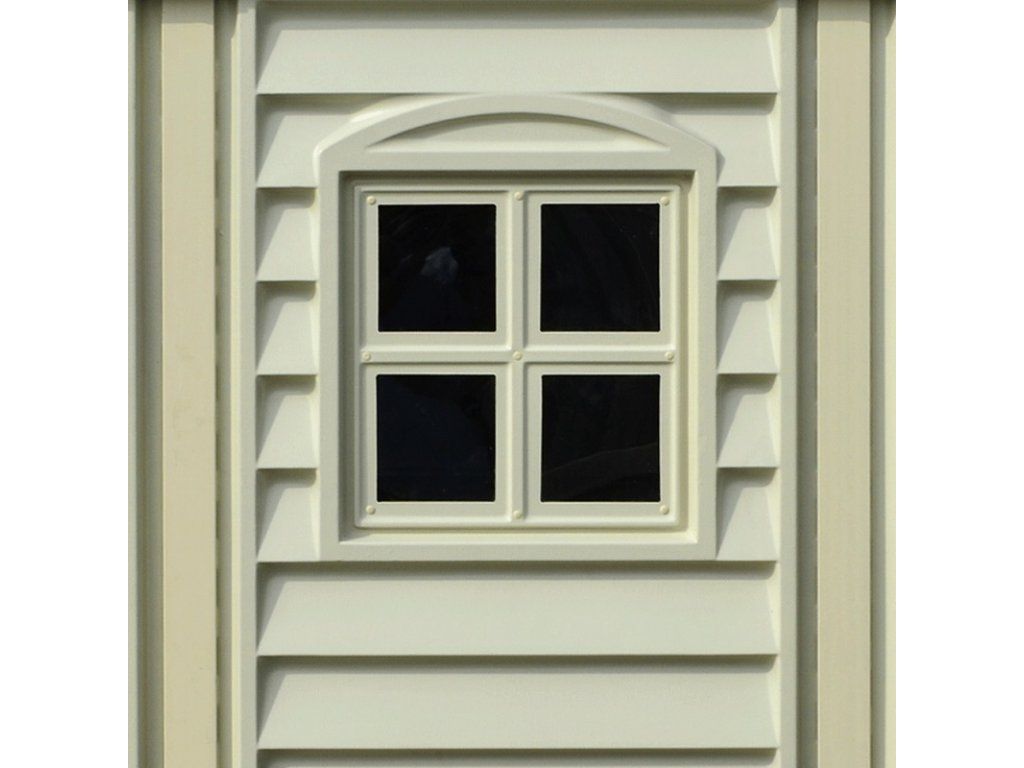 Domček je vyrobený z vinylu, takže veľmi dobre odoláva všetkým poveternostným vplyvom. Výhodou vinylu oproti bežnému plastu je, že je ohňovzdorný, absolútne tvarovo stály. Vďaka okienkam je v domčeku dostatok svetla. Dvere je možné doplniť visiacim zámkom, čo zaistí uskladneným veciam dostatočnú ochranu a bezpečie.