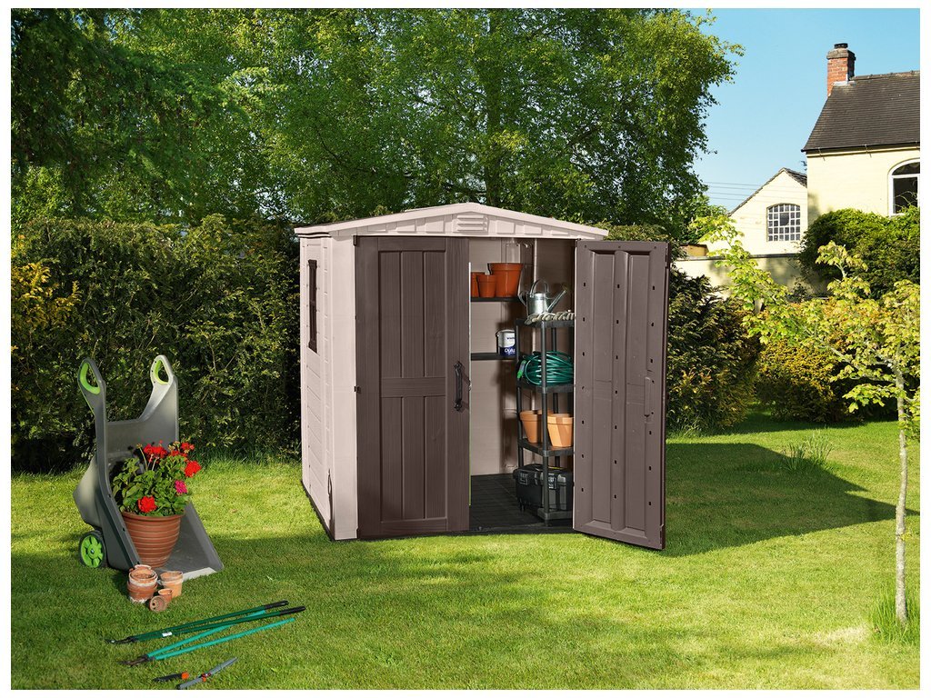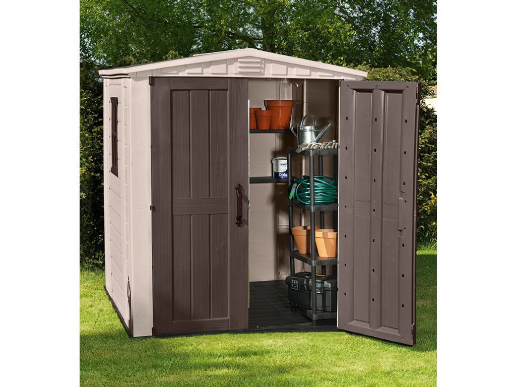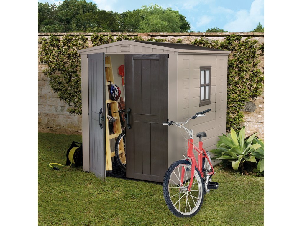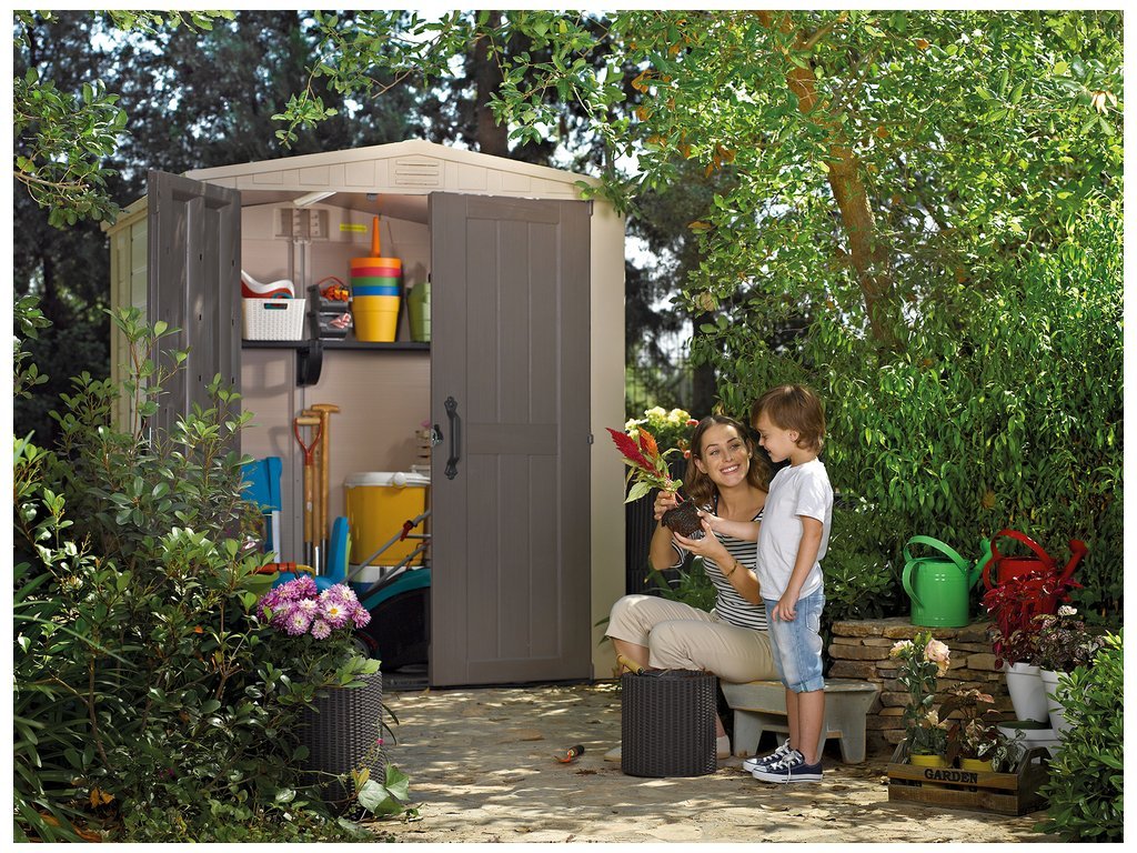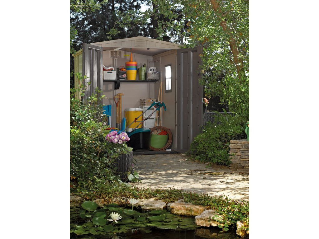 Bezúdržbový domček vyrobený z plastu ideálny pre skladovanie náradia na vašej záhrade. Oceníte vnútorný priestor vybavený policami, ktorý vám zaručí dobrý prehľad. Medzi výhody patrí možnosť uzamknutia, veľké okno a ventilačná mriežka, ktorá zabraňuje zbytočnému vlhnutiu. Domček vyniká stabilitou vďaka kovovým výstužam a odoláva aj nepriaznivým podmienkam počasia.