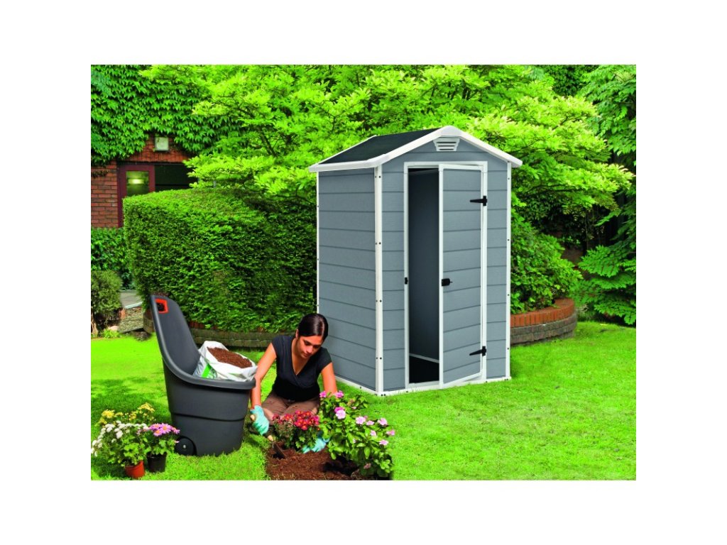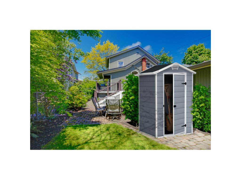 Bezúdržbový domček vyrobený z plastu ideálny pre skladovanie náradia na vašej záhrade. Ponúka praktické riešenie úložného priestoru. Ventilačná mriežka zabezpečuje prívod vzduchu a zabraňuje vlhnutiu. Domček sa vyznačuje kvalitou, dizajnom a stabilitou vďaka kovovým výstužam.