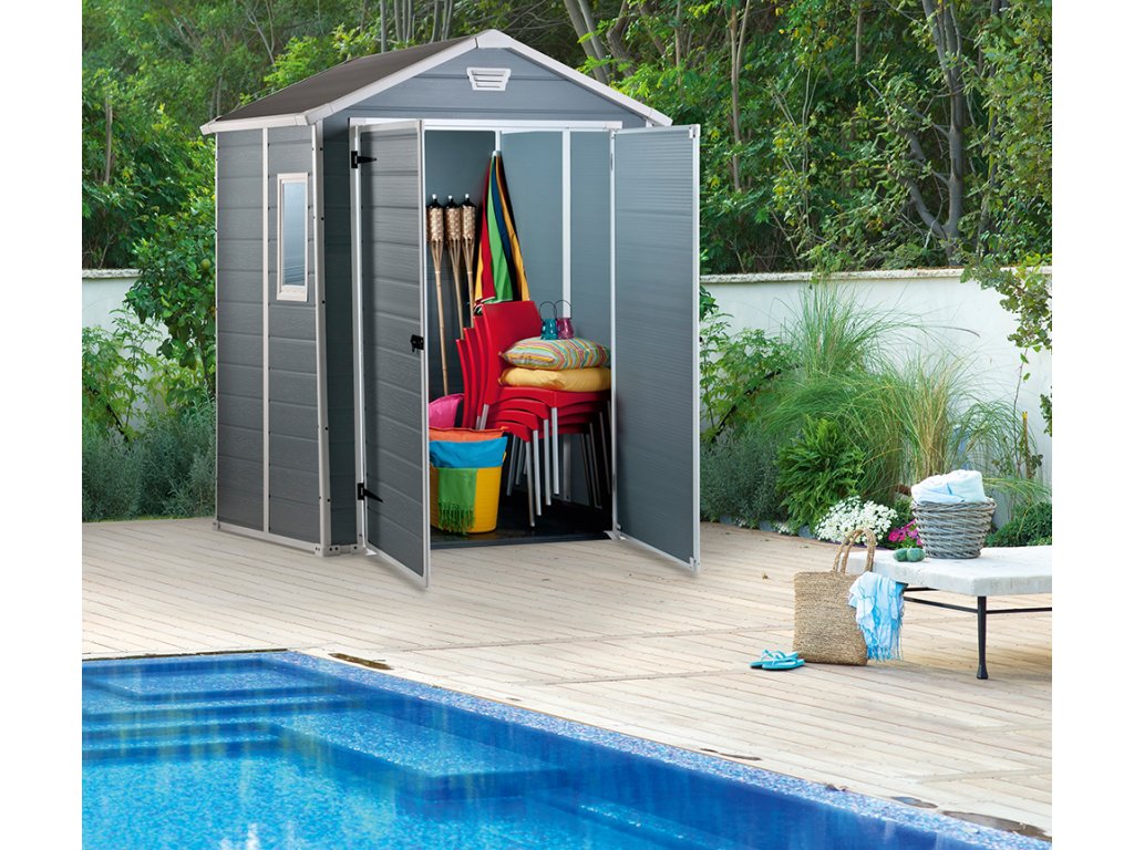 Bezúdržbový domček vyrobený z plastu ideálny pre skladovanie náradia na vašej záhrade. Ponúka praktické riešenie úložného priestoru. Výhodou je veľké okienko, ktoré zaisťuje dostatok svetla. Ventilačná mriežka zabezpečuje prívod vzduchu a zabraňuje vlhnutiu. Domček sa vyznačuje kvalitou, dizajnom a stabilitou vďaka kovovým výstužam.