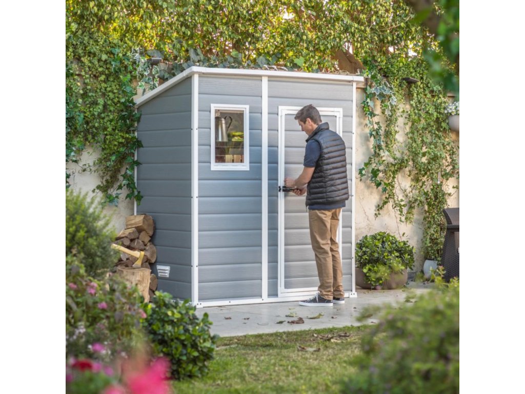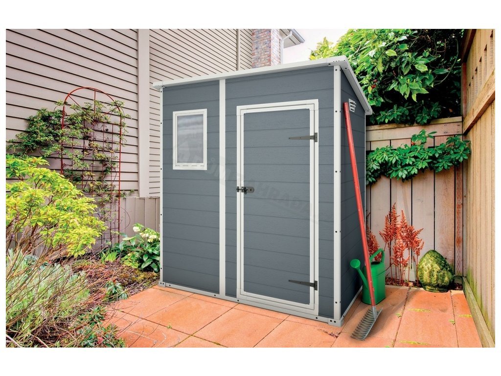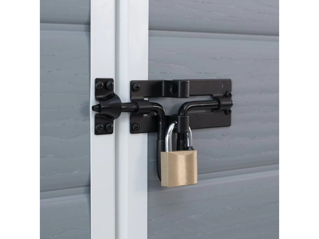 Vstavaný ventilačný panel zaisťuje stály prívod vzduchu do interiéru a súčasne chráni pred škodlivými účinkami vlhkosti. Kovovo vystužený rám a možnosť zamykania visiacim zámkom, umožňuje používateľom efektívne zaistiť uložené predmety. Domčeky Keter sa vyznačujú kvalitou, dizajnom a extrémnou stabilitou. Všetky domčeky Keter sú vybavené vysoko odolnou podlahou.