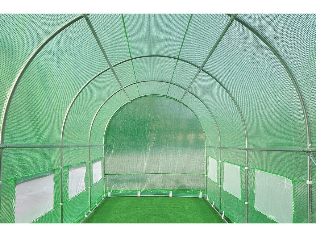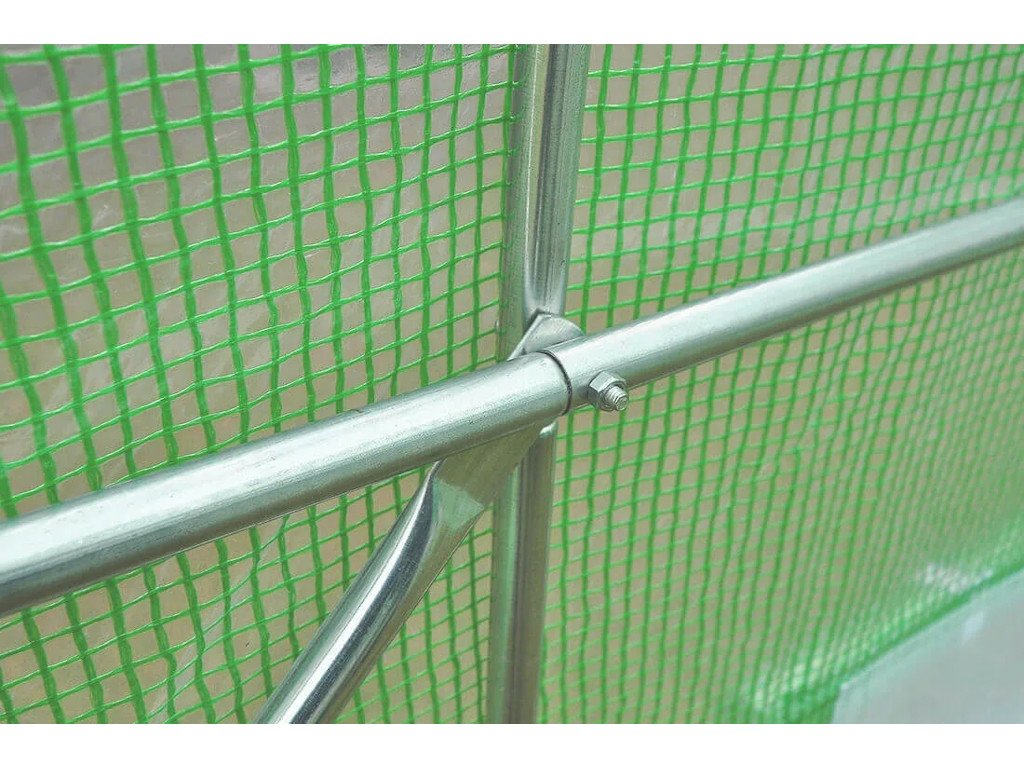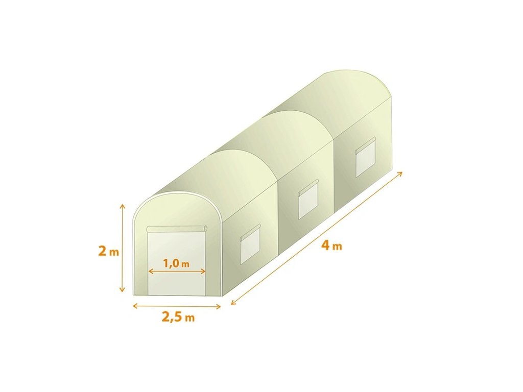 Tunel s dĺžkou 4 m a výškou 2 m vám umožňuje voľný pohyb. Má 6 uzavretých vetracích okien so sieťkami proti hmyzu, ktoré umožňujú správnu cirkuláciu a reguláciu teploty a vlhkosti vzduchu. Široké rolovacie dvere so západkami zvyšujú funkčnosť tunela. Vo vnútri sú v hornej časti rámu namontované dve priečky, ktoré zabezpečia stabilitu a umožnia uviazať šnúrky na popínavé rastliny.