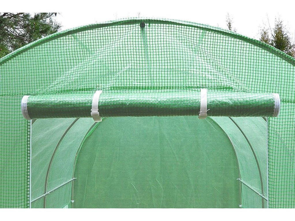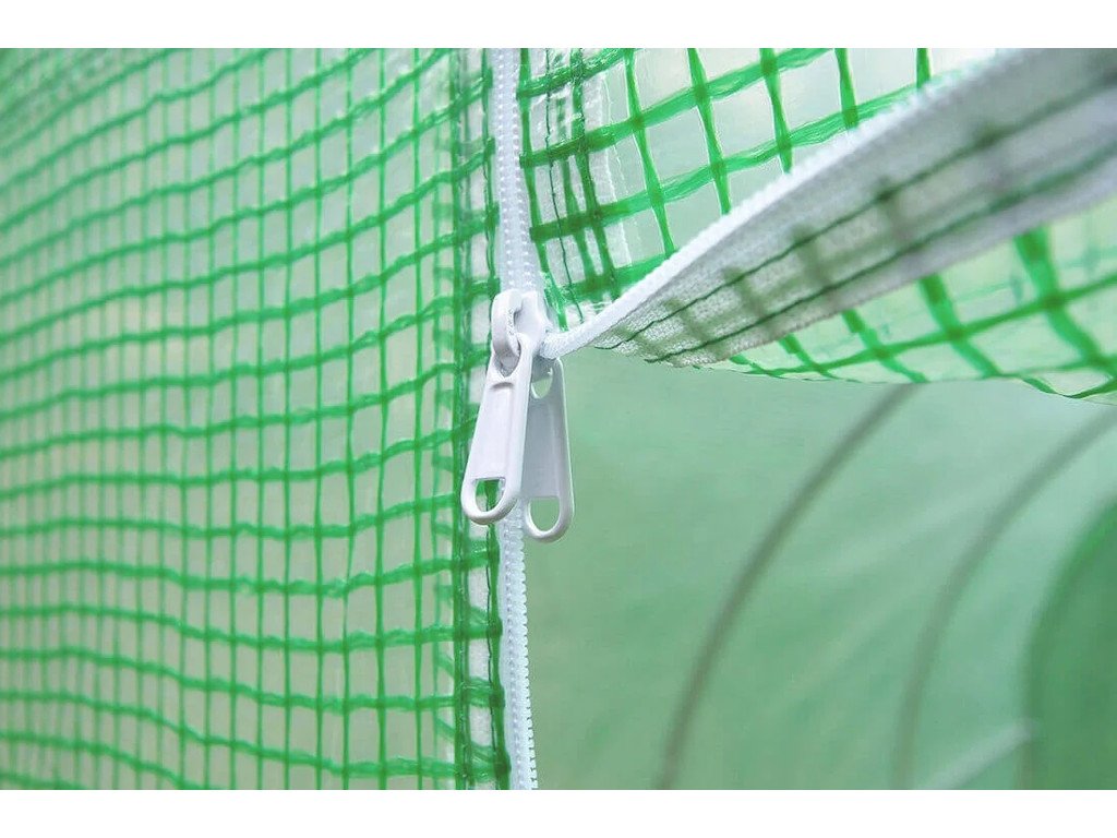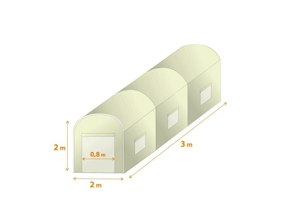 Tunel s dĺžkou 3 m a výškou 2 m vám umožňuje voľný pohyb. Má 6 uzavretých vetracích okien so sieťkami proti hmyzu, ktoré umožňujú správnu cirkuláciu a reguláciu teploty a vlhkosti vzduchu. Široké rolovacie dvere so západkami zvyšujú funkčnosť tunela. Vo vnútri sú v hornej časti rámu namontované dve priečky, ktoré zabezpečia stabilitu a umožnia uviazať šnúrky na popínavé rastliny.