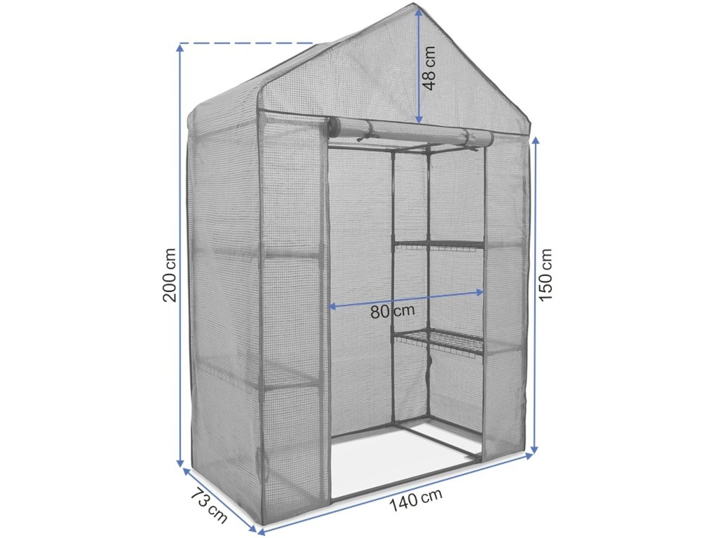 Tento typ záhradného skleníka je ideálny pre menšie rastliny, vrátane mladých sadeníc a odrezkov. Môžete v nej pestovať zeleninu či ovocie, ale aj teplomilné okrasné druhy. Vo vnútri sú 4 police na umiestnenie veľkého množstva nádob. Skleník je pokrytý priehľadnou, vrstvenou PE fóliou 140g/m2 s osadenou bielou PP sieťovinou, ktorá zabezpečuje veľmi dobrú priepustnosť svetla. Zároveň je veľmi odolný voči poveternostným vplyvom a trvácny. Ľahký rám je vyrobený z ocele, vďaka čomu je odolný. Široký vchod sa zapína na zips, čo zaisťuje komfort používania a primeranú ochranu pred hmyzom. Fóliovník je veľmi jednoduchý na montáž a univerzálny - zmestí sa aj do malej záhrady. Vďaka malej hĺbke a šírke sa hodí aj na terasu alebo presvetlený balkón. Je to perfektná voľba pre každého nadšenca rastlín, ktorý im chce poskytnúť optimálne podmienky pre rast. Odporúčame!