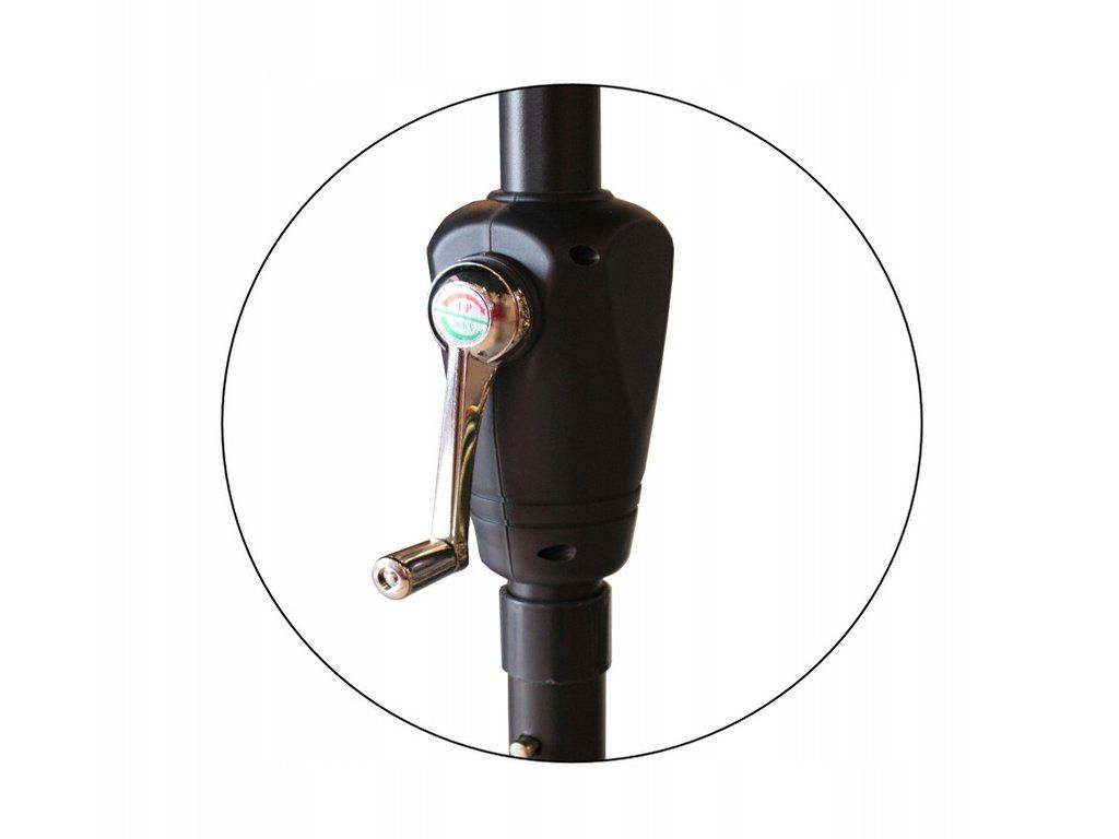 Ideálny slnečník na jarné a letné obdobie. Uplatní sa na čerstvom vzduchu, či už v záhrade, na balkóne alebo terase. Niektorí z nás sa zameriavajú na rodinné stretnutia alebo grilovanie s priateľmi, iní si vyberajú relax s knihou. Slnečník je skvelý na tento typ aktivít, chráni vás pred škodlivými účinkami slnečného žiarenia. Je vyrobený z materiálu vysokej kvality. Disponuje kľukou, vďaka ktorej je skladanie alebo rozkladanie veľmi jednoduché. Je vybavený pevným rámom vyrobeným z oceľového materiálu s práškovým náterom. V strieške sa nachádza špeciálny ventilačný otvor. Okrem toho slnečník obsahuje vodoodolný obal vyrobený z polyesteru v čiernej farbe.