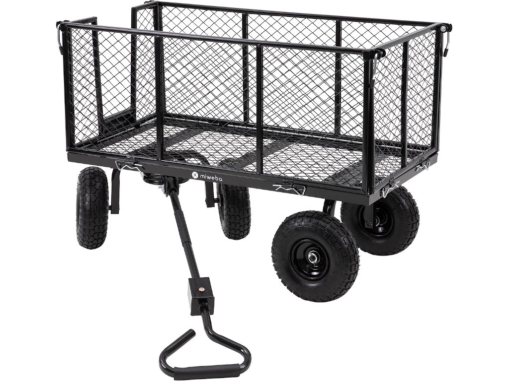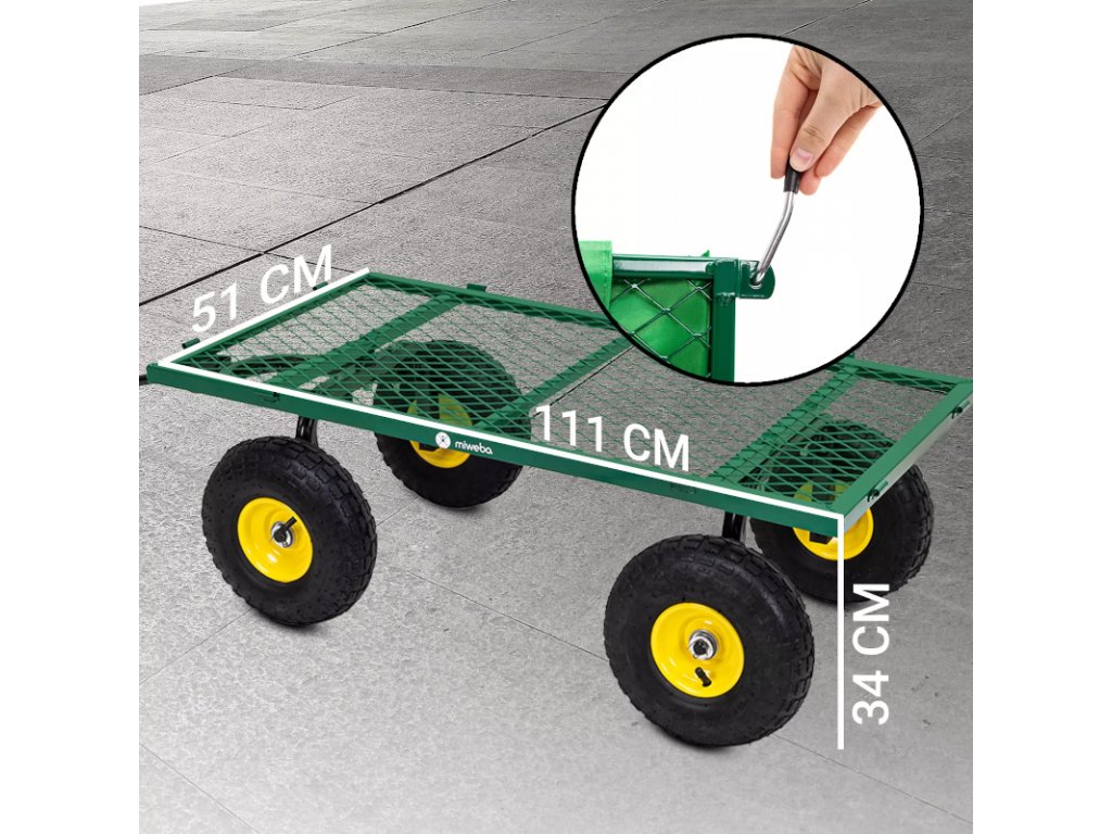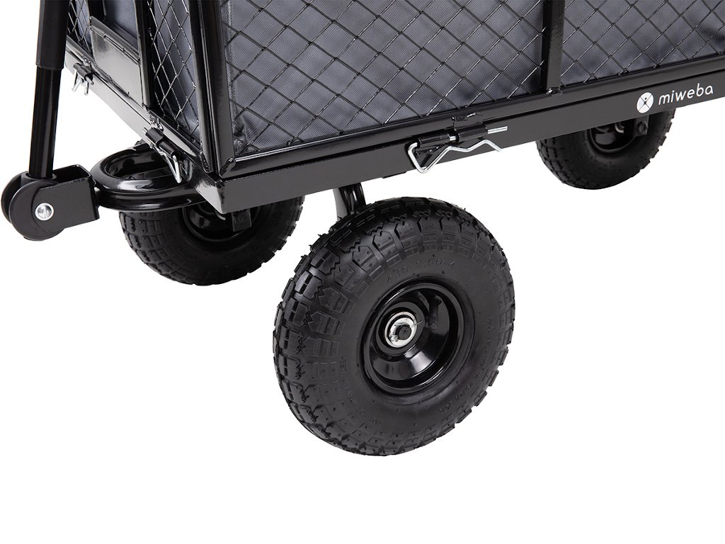 Aj keď ručný vozík Miweba MB-550 boduje veľkou plochou, je tiež mimoriadne úsporný. Pomocou rýchlouzáverov môžete zložiť bočné steny. V prípade potreby sa dajú spolu s riadiacou tyčou aj úplne odstrániť. Tým sa ručný vozík zmenší na veľkosť 111,0 x 51,0 x 34,0 cm. Takže ručný vozík ľahko uložíte do malého priestoru.