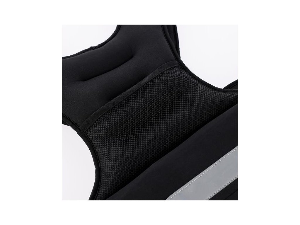 Vybavenie bolo navrhnuté s ohľadom na pohodlie užívateľa. Regulovateľné popruhy umožňujú dokonalé prispôsobenie akejkoľvek postave, a špeciálny neoprénový materiál je mäkký, odolný proti potu a zabraňuje skĺzavaniu vesty aj pri intenzívnych pohyboch. Elastické sieťované vrecko poskytuje priestor na uloženie telefónu, kľúčov alebo peňaženky, vďaka čomu sa tréning stáva ešte praktickejším.