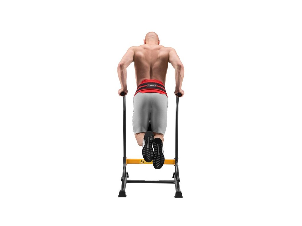 Oceľovú reťaz jednoducho pretiahnete kotúčmi o požadovanej hmotnosti a karabínu zapnete späť k pásu, vďaka záťaži sa samotný pás nepovoľuje a drží na svojom mieste. Zadná strana PSTX05 je navyše rozšírená v oblasti bedrovej chrbtice. Tento detail napomáha lepšiemu rozloženiu záťaže a pomáha predchádzať bolestiam chrbta.